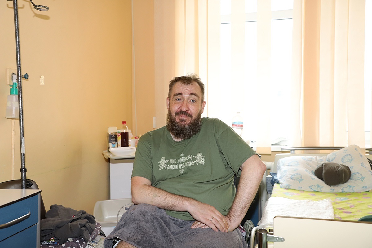 “Я побував у багатьох лікарнях, у різних містах. І допомога приходила від дуже різних людей. Від школярів, які самі приходять у неділю, збирають гроші і приносять мені маленьку пляшку коли — просто поговорити, послухати, чому я пішов воювати. І тих людей, які серед тижня пишуть у Facebook чи Instagram, просять задонатити, а потім приїжджають до нас, підтримують, піднімають настрій. Це ще раз доводить мені особисто, що я був там недаремно. Що я недаремно воював за цей народ. Таке єднання — це величезна річ.”